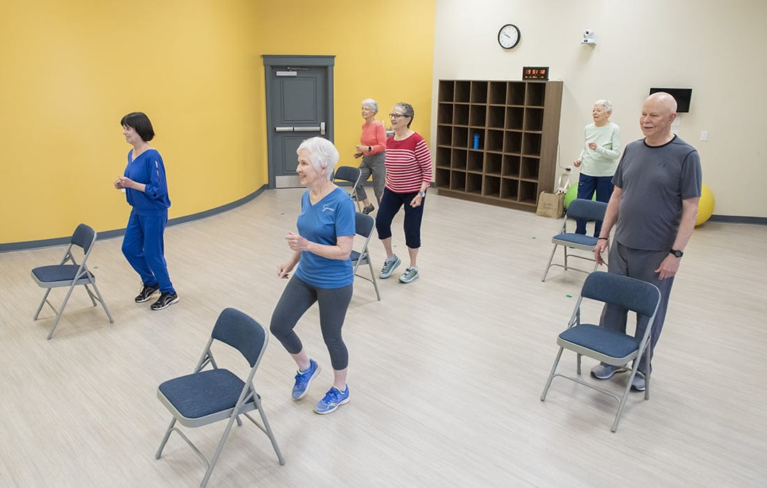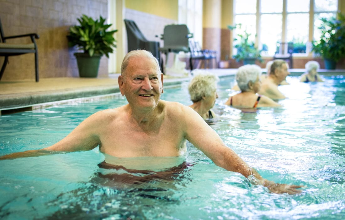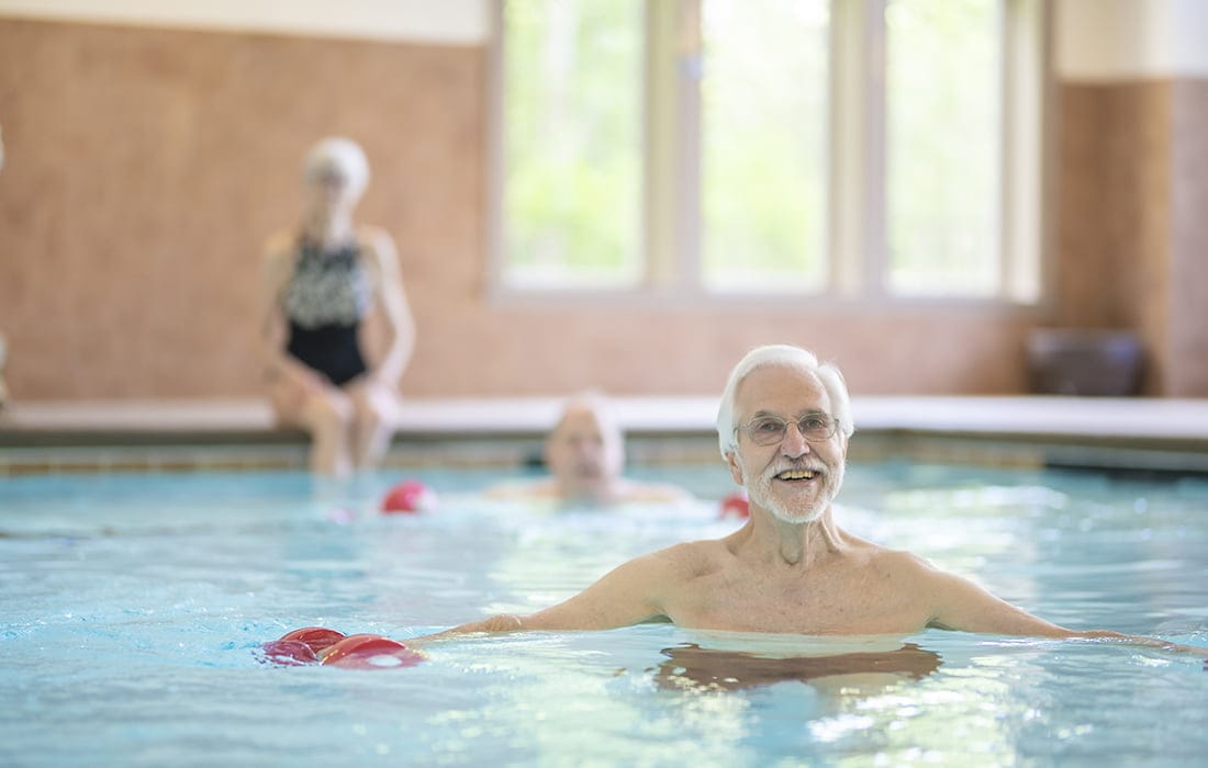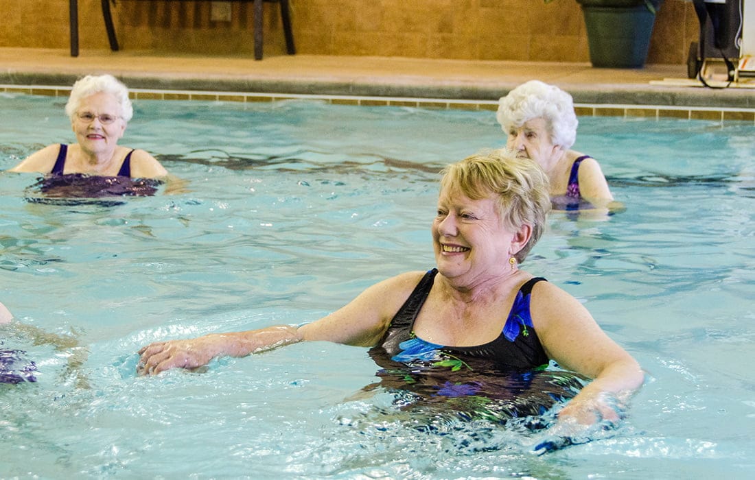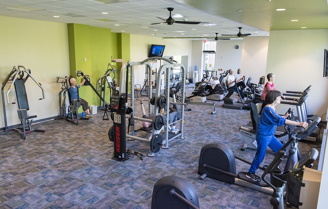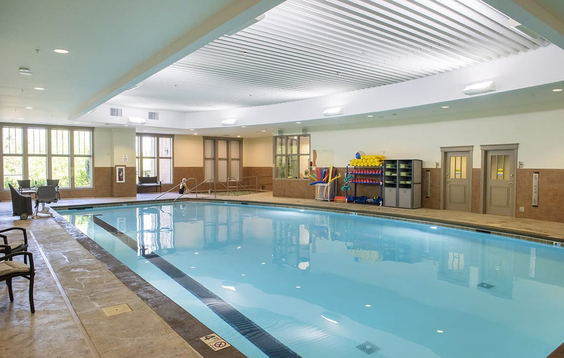 The newly updated fitness room boasts rowing machines, treadmills, recumbent bikes, and weight machines. The more than 1,700 square foot yoga & aerobics studio offers classes for all fitness levels, including Chair Yoga, Nia, Foot Fitness, Total Fitness, and Tai Chi. If you prefer water exercise, check out the pool for lap swims or water aerobics. And when and if you need it, our therapy team can help you build back strength, balance, and flexibility before or after surgery.
