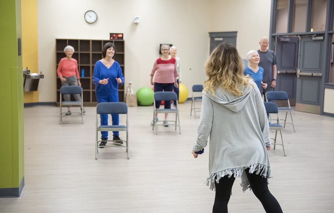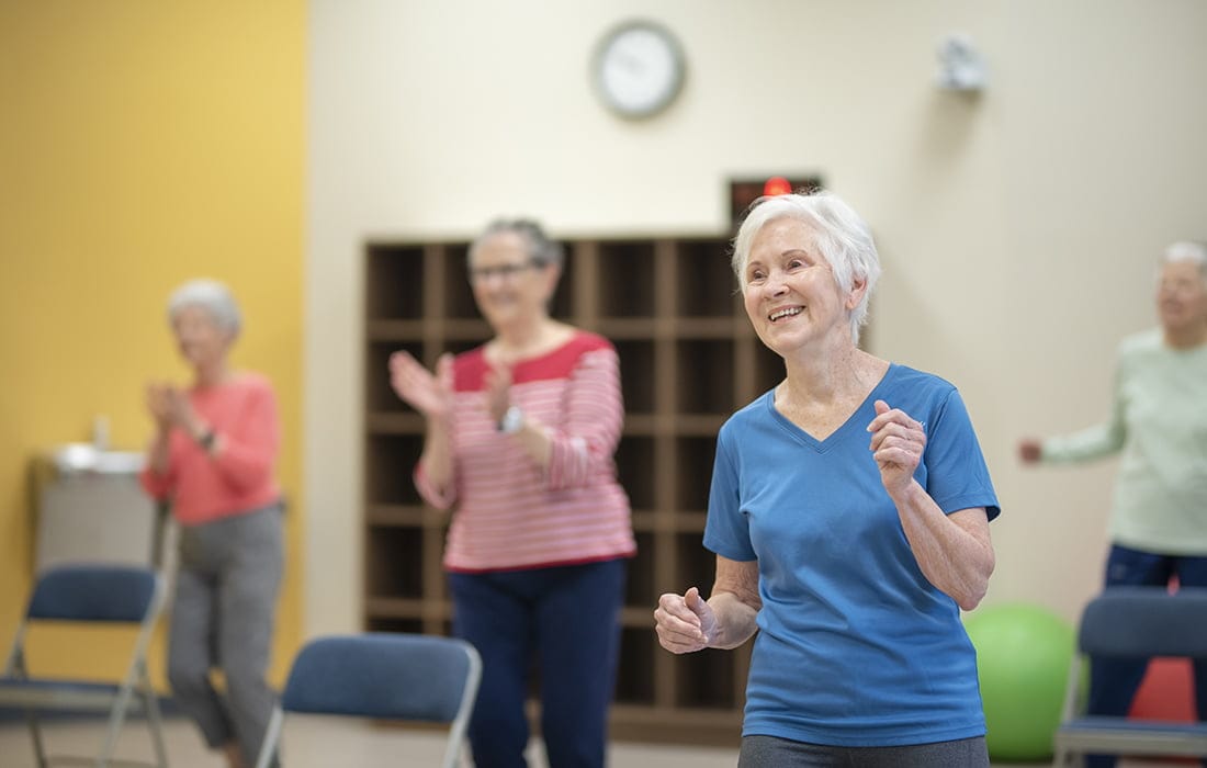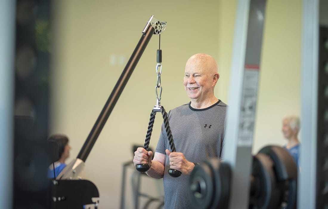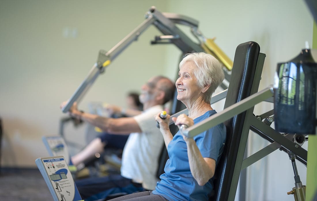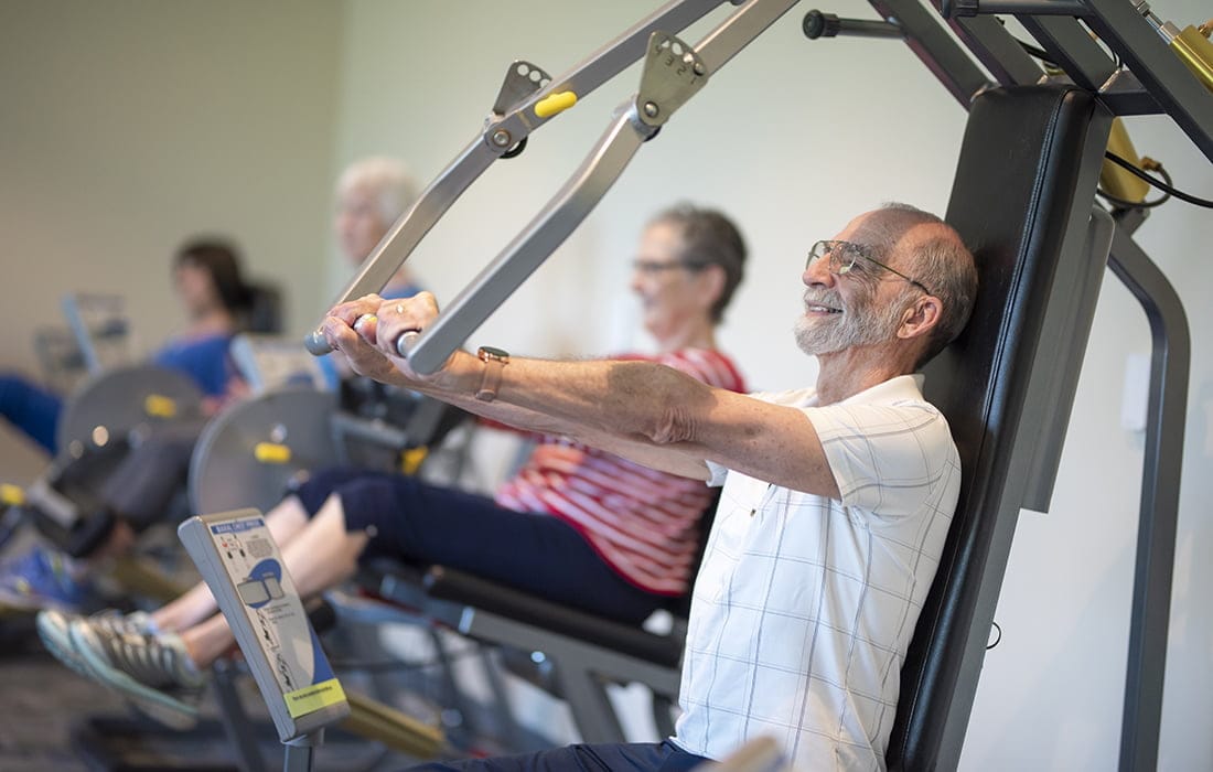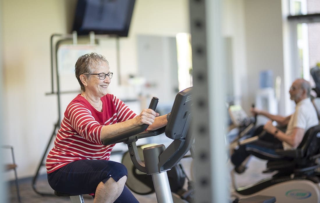 The newly updated fitness room boasts rowing machines, treadmills, recumbent bikes, and weight machines. The more than 1,700 square foot yoga & aerobics studio offers classes for all fitness levels, including Chair Yoga, Nia, Foot Fitness, Total Fitness, and Tai Chi. If you prefer water exercise, check out the pool for lap swims or water aerobics. And when and if you need it, our therapy team can help you build back strength, balance, and flexibility before or after surgery.